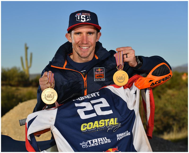 One of the most versatile off-road racers in the U.S. if not the world, Taylor Robert has done it all. From Kawasaki’s Team Green to the FMF KTM Factory Off-road Racing Team, he’s done well from Baja to AMA EnduroCross, from Erzberg to AMA Pro MX, AMA H&H to World Enduro. He’s proudest of of the three U.S. World Trophy team wins he was an integral part of in his 11 ISDEs as well as his overall individual win in 2016.